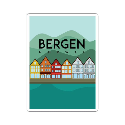 Bergen Travel Kiss-Cut Stickers, Colorful City Art, Perfect for Laptops, Journals, Gifts, Home Decor